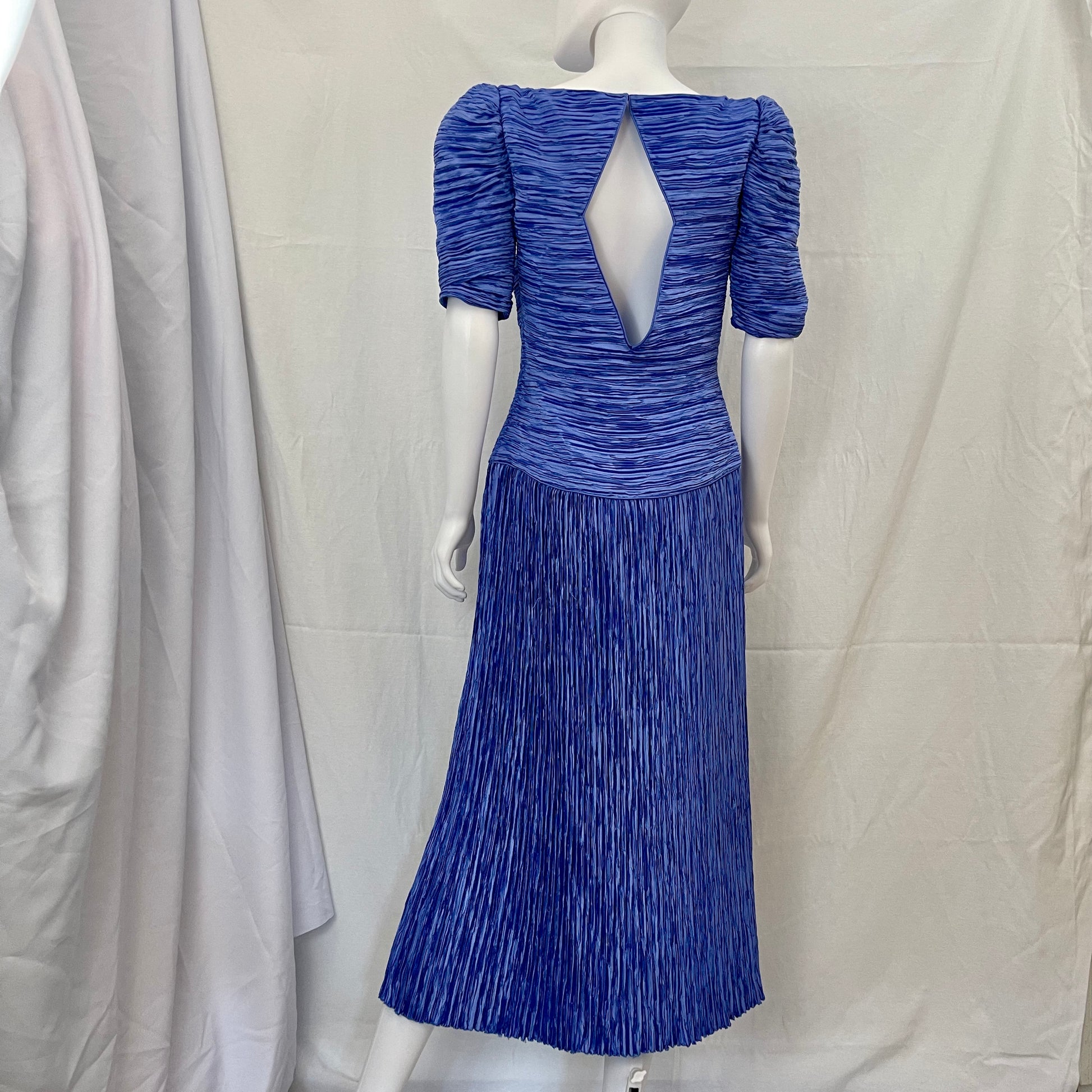 Vintage 1980s Mary McFadden Couture for Neiman Marcus plisse pleated evening/cocktail dress. Periwinkle.