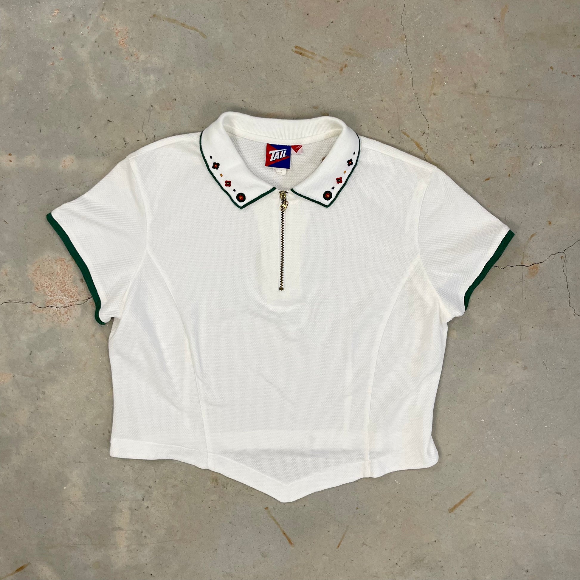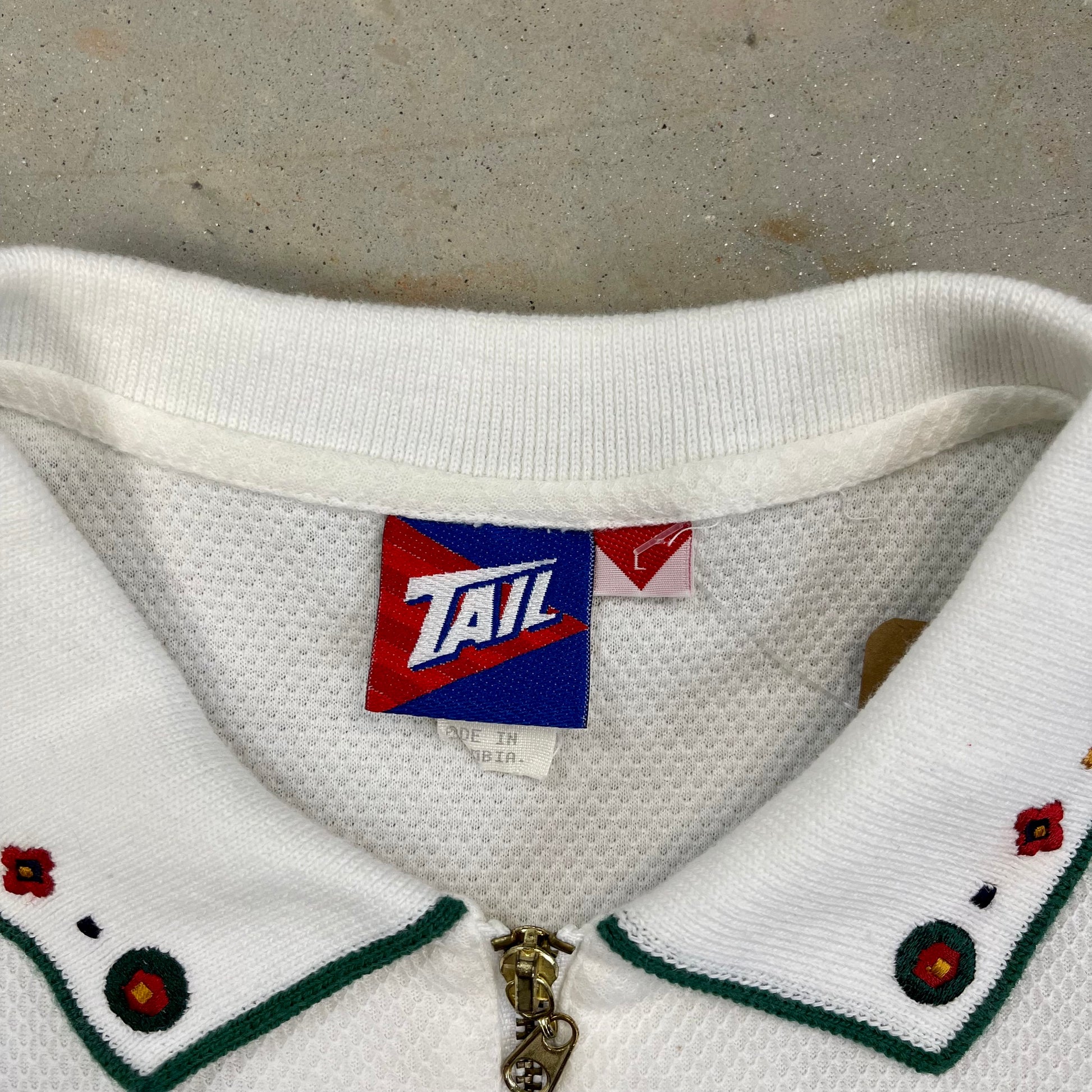 Made in Columbia. Polyester/cotton pique fabric. Has lots of stretch.