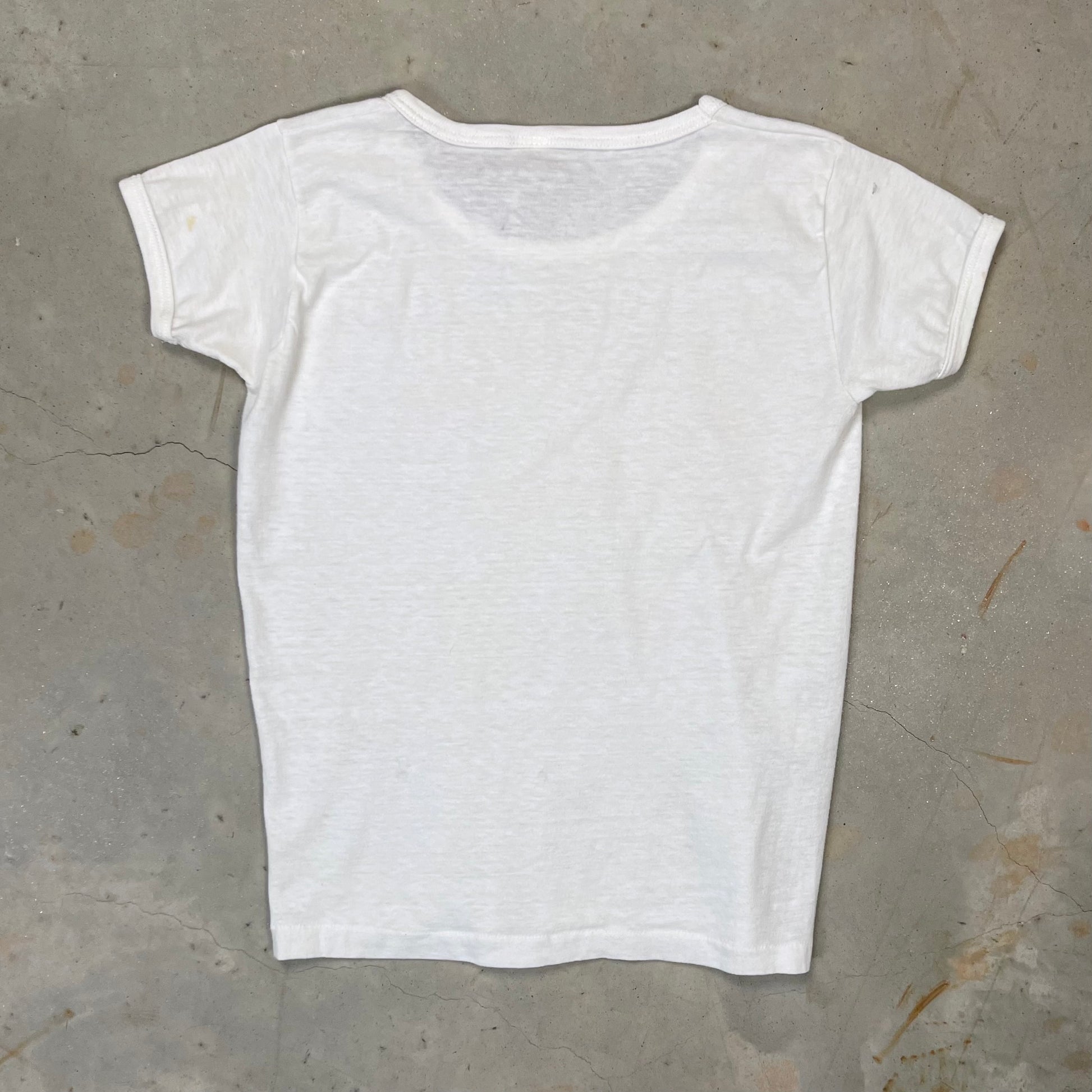 Single stitch all around. Perfectly broken in. Soft, thin cotton.