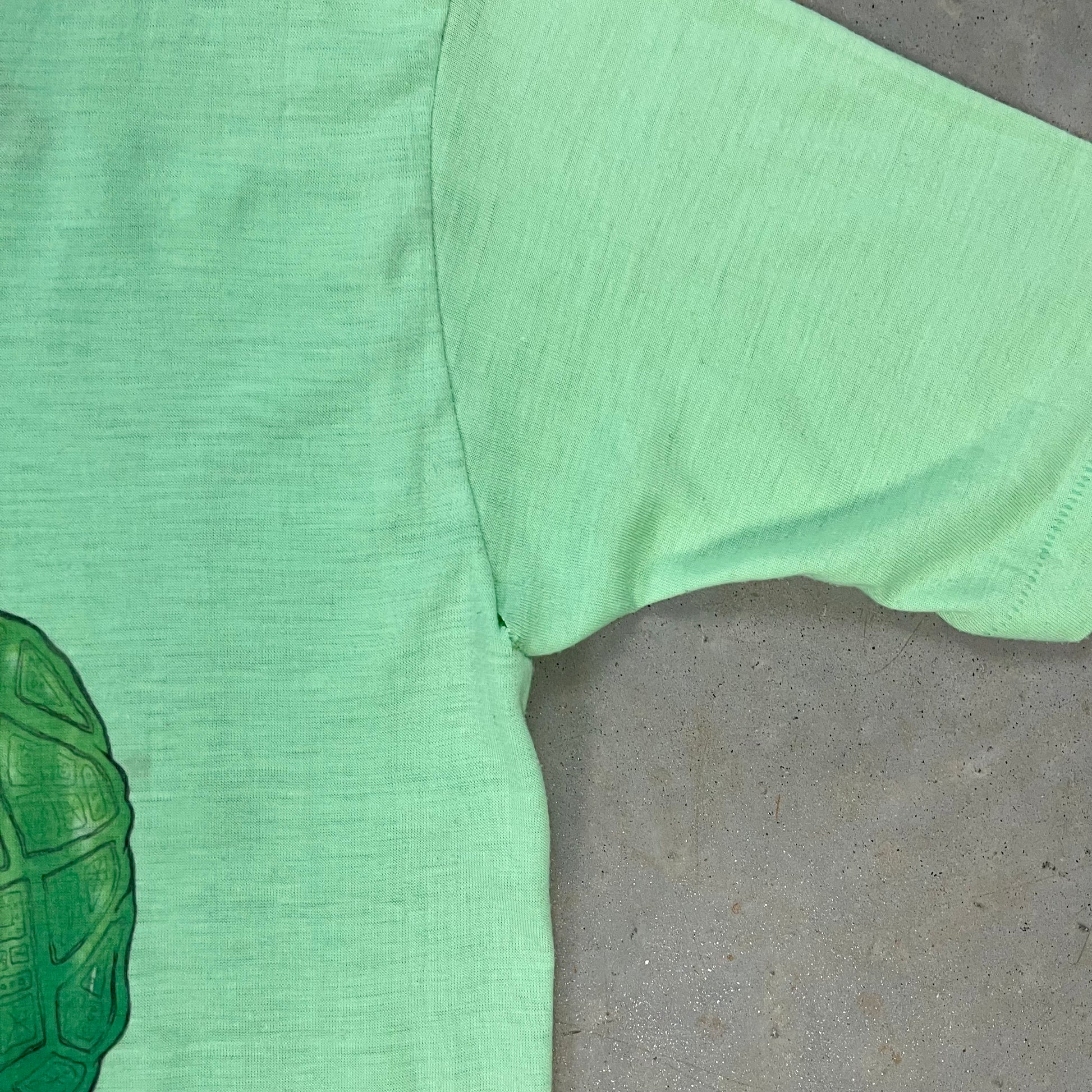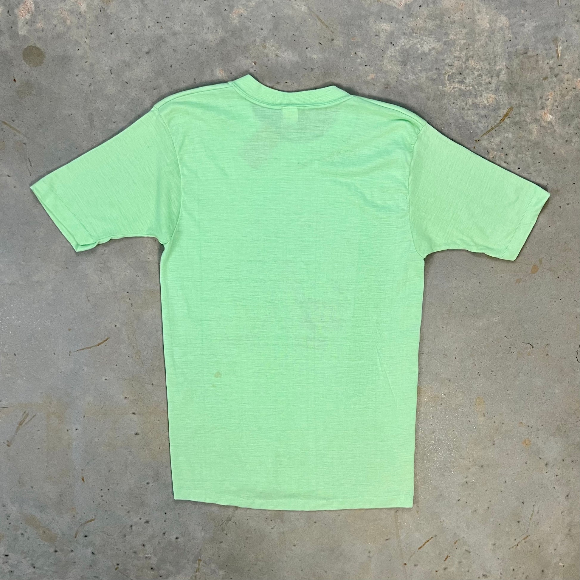 Single stitch all around. 100% super soft, thin polyester. Perfectly broken in.