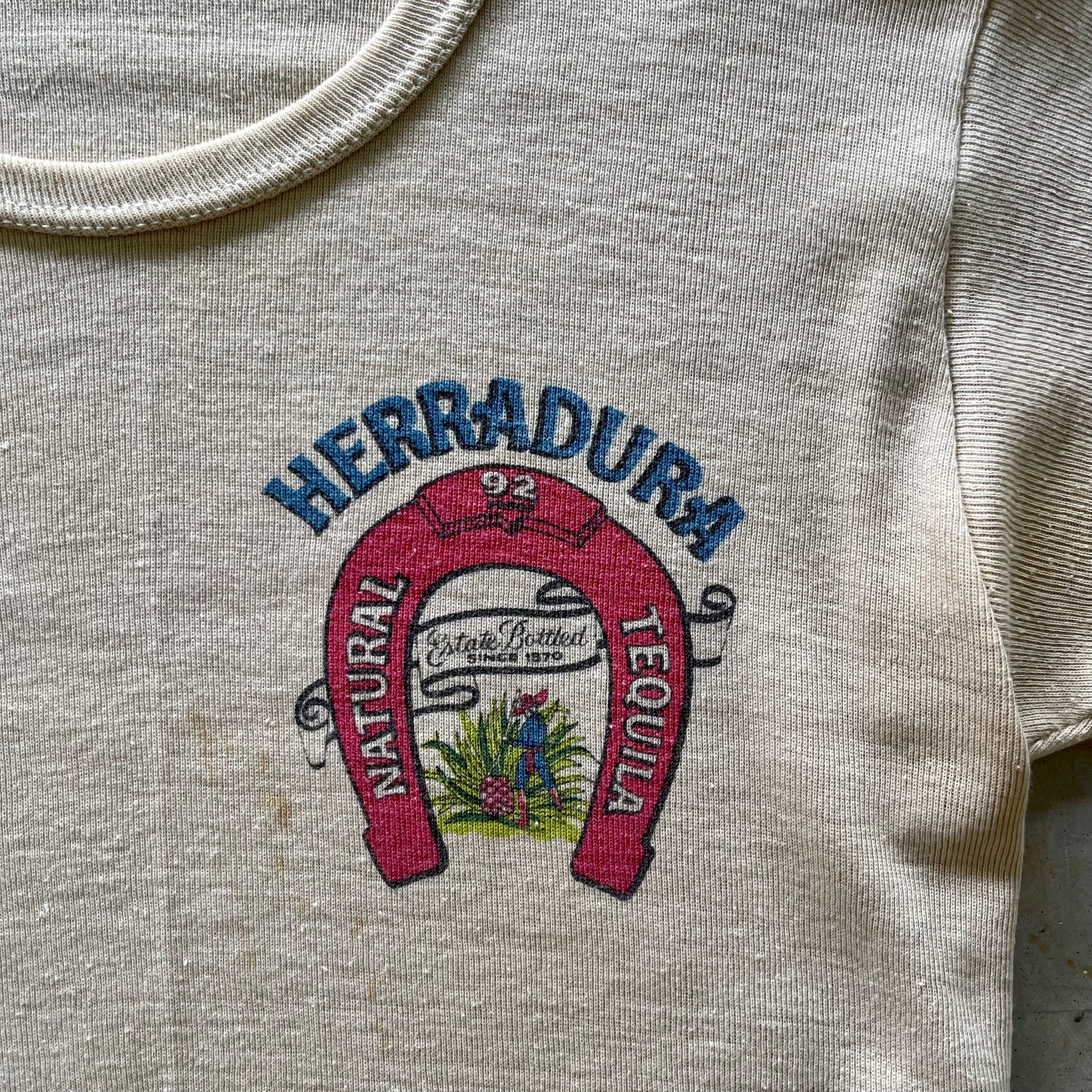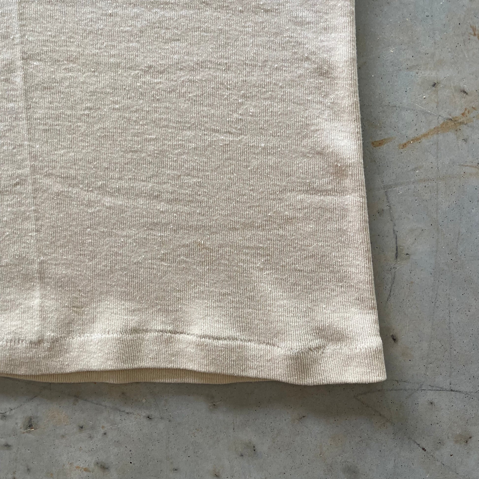 Feels like a cotton blend (fabric slightly thicker than average tees). Has lots of stretch.