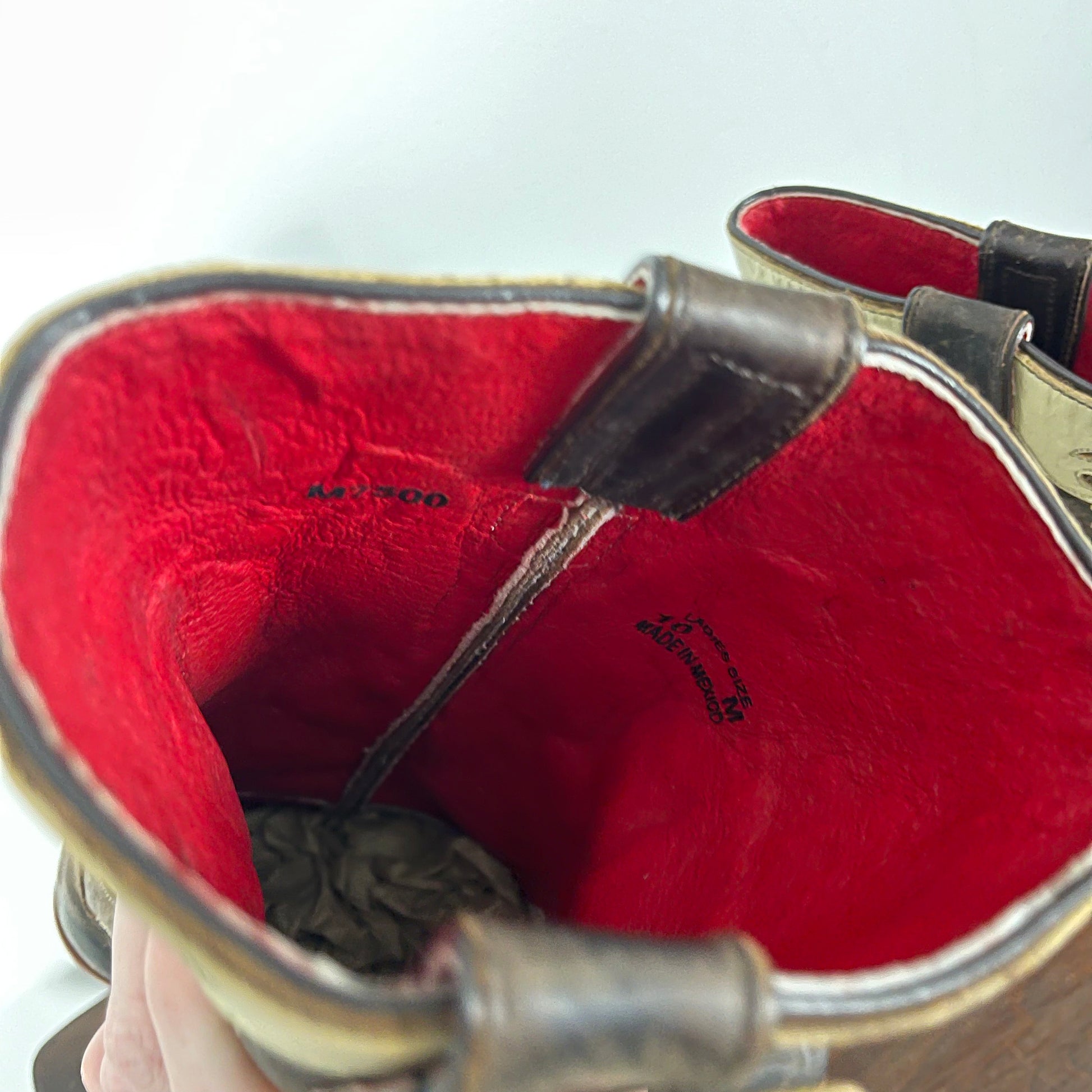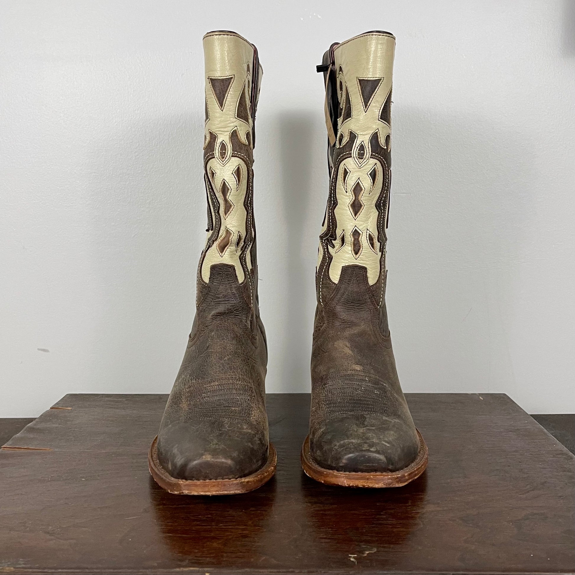 Slim square toe. Brown and cream.