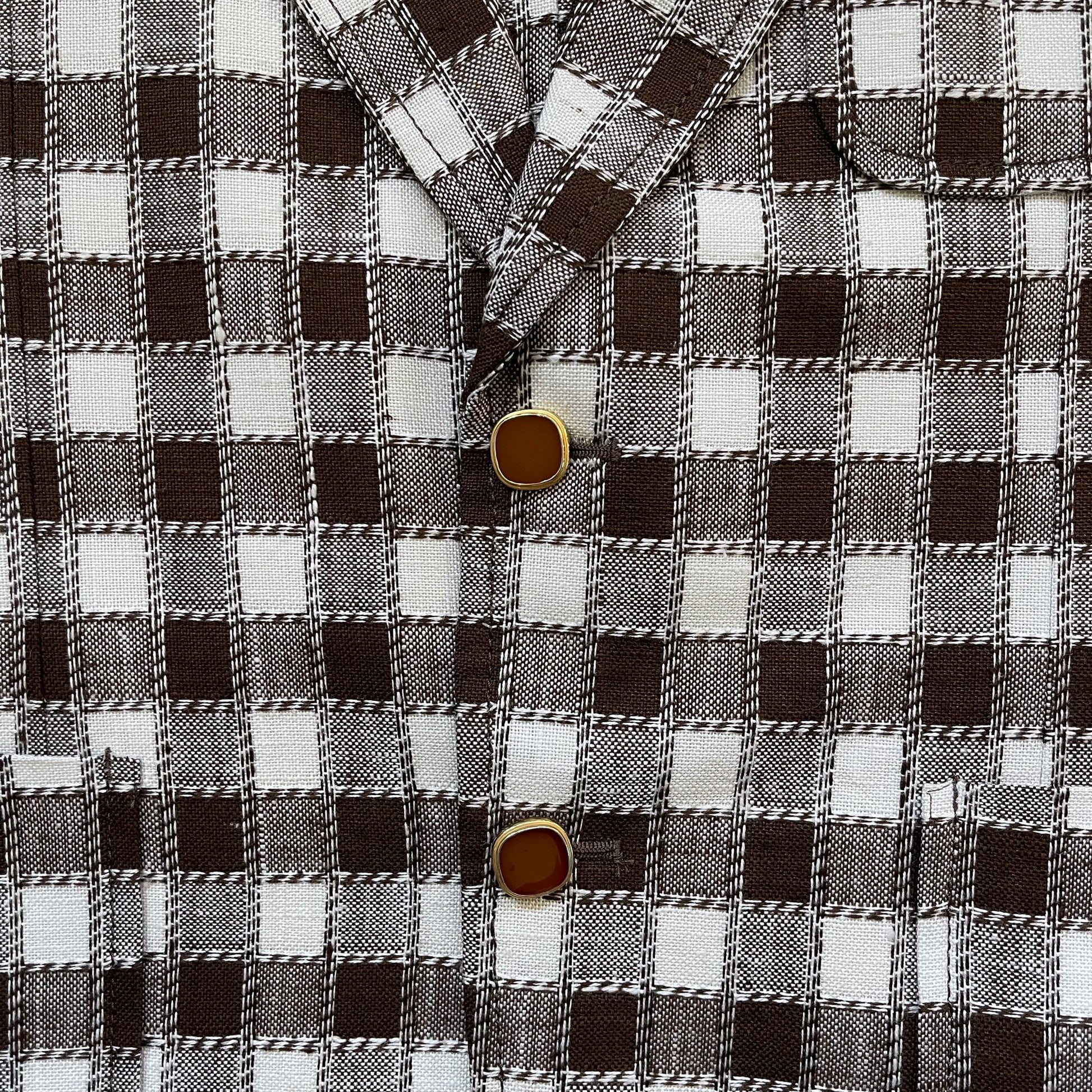 Brown & off-white/cream. Light weight. Decorative Buttons.