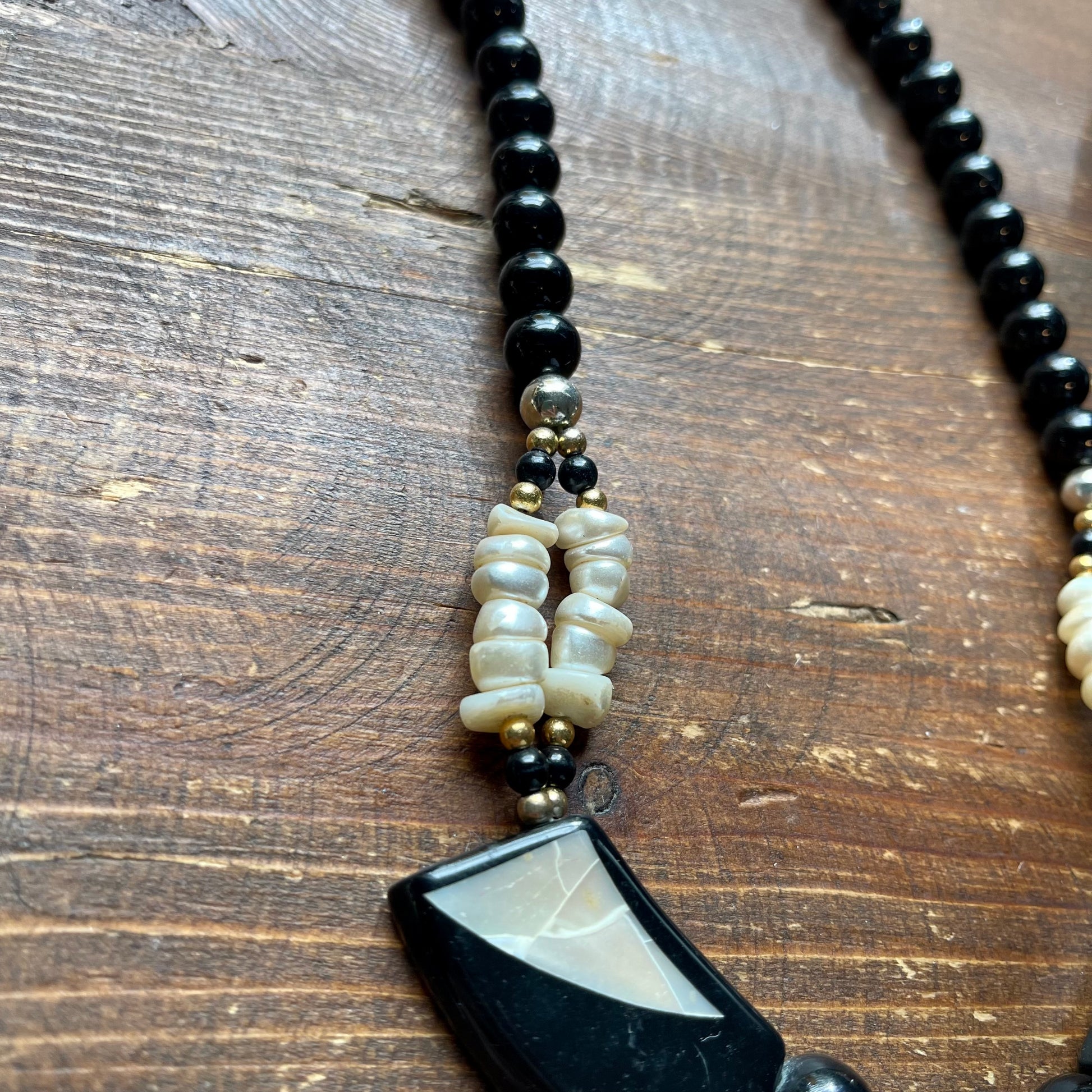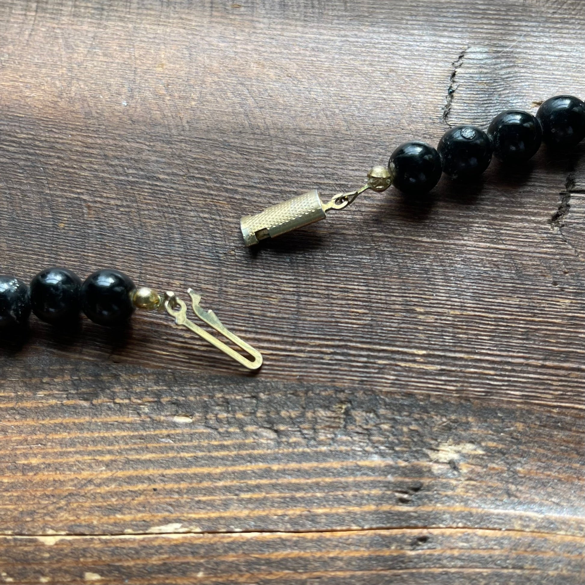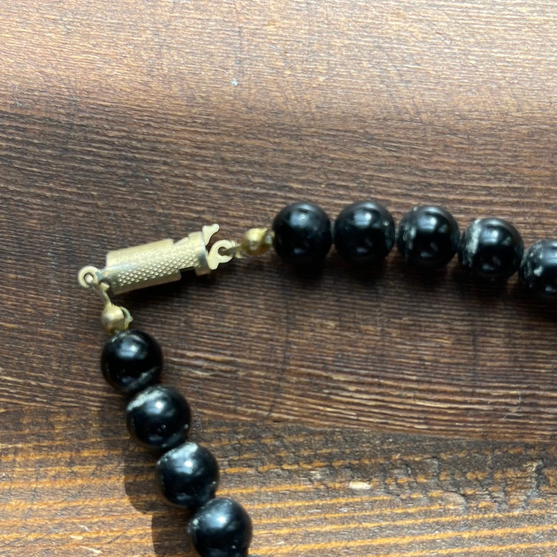 Faux pearl look-a-like beads (have a pearlescent coating-some color chipping). Light scratches throughout. Nothing very noticeable when wearing. Overall in good vintage condition.
